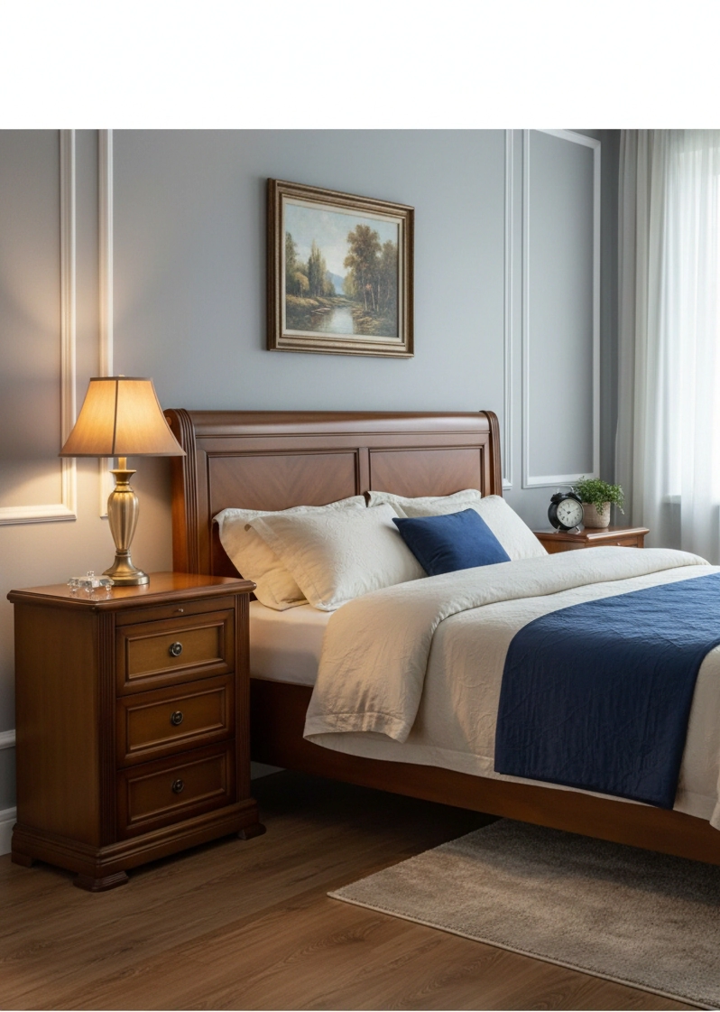 Transforma tu dormitorio con la sofisticación de nuestra mesa de noche de estilo clásico. Esta pieza no es solo un mueble de almacenamiento, sino una declaración de buen gusto y durabilidad, diseñada para quienes aprecian los detalles tradicionales y la calidez de la madera natural.