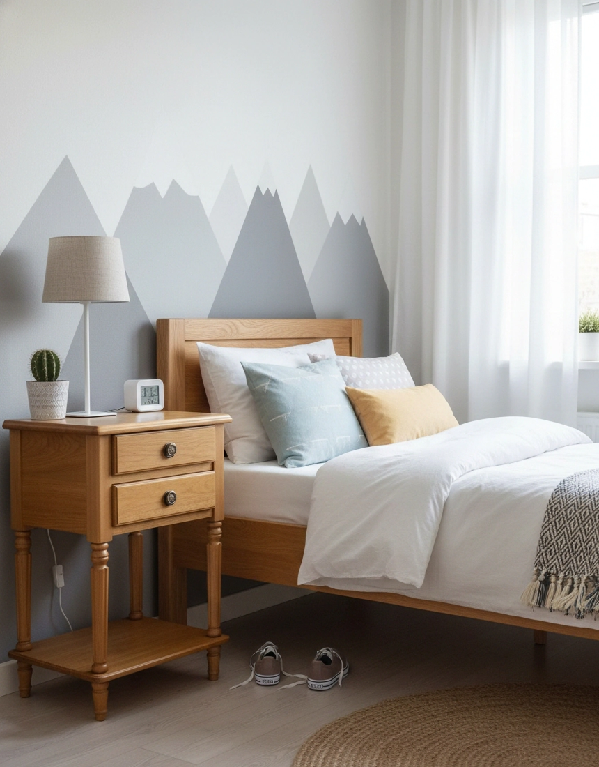 Añada un toque de calidez y funcionalidad a cualquier dormitorio con esta mesita de noche de diseño estilizado. Su estructura elevada sobre patas torneadas la convierte en la opción ideal para dormitorios juveniles o habitaciones donde se busca una sensación de amplitud y orden.