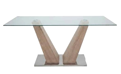 Esta sofisticada mesa de comedor es una pieza central que combina la elegancia del vidrio con la calidez de la madera y la modernidad del metal, creando un diseño verdaderamente escultural y contemporáneo.