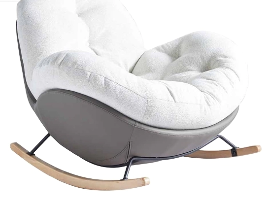Esta moderna y acogedora mecedora relax, destaca por su diseño vanguardista y la combinación de texturas y materiales.