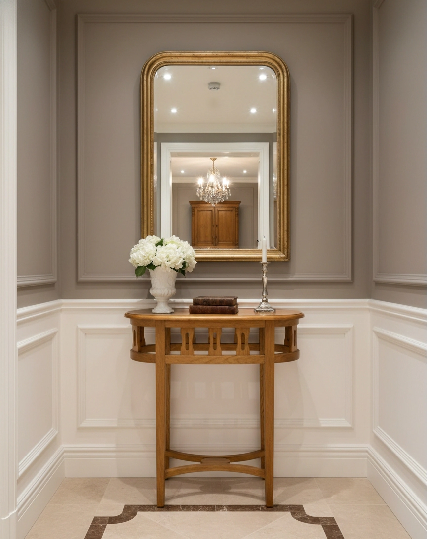 Transforma el recibidor de tu hogar con la Consola Aura, una pieza que combina la nobleza de la madera maciza con un diseño de líneas arquitectónicas. Su estructura ligera y sus detalles calados la convierten en el elemento ideal para jerarquizar ingresos, pasillos o espacios de transición con un toque de distinción clásica y frescura moderna.